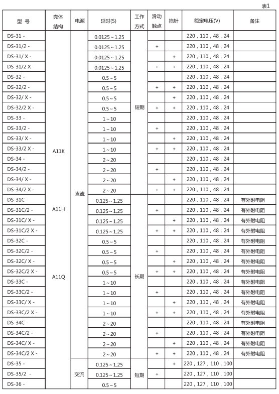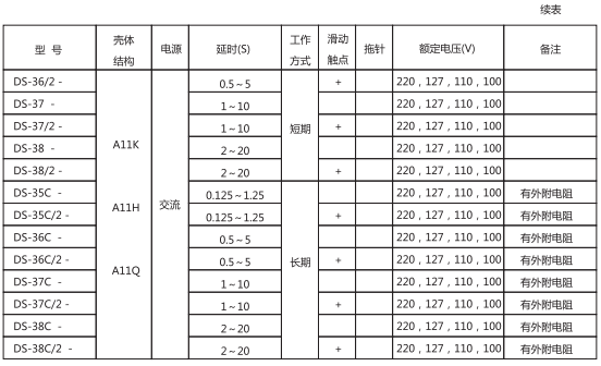 對于交流短時工作的: DS-35C, DS-36C, DS-37C. DS-38C不大于15VA。